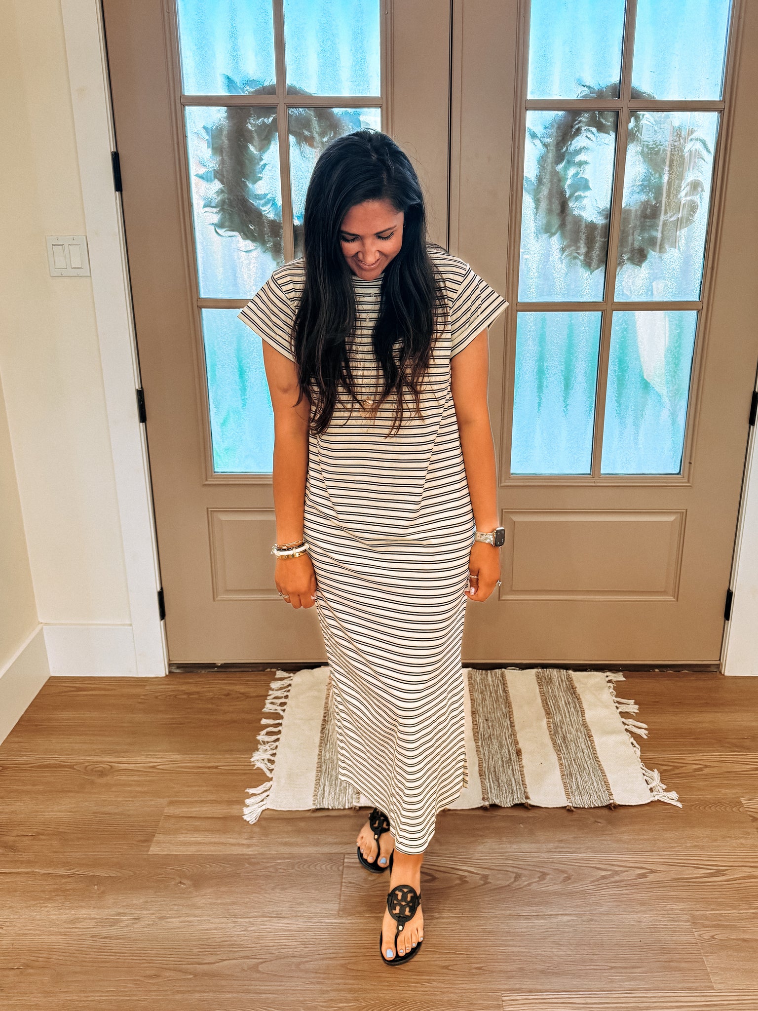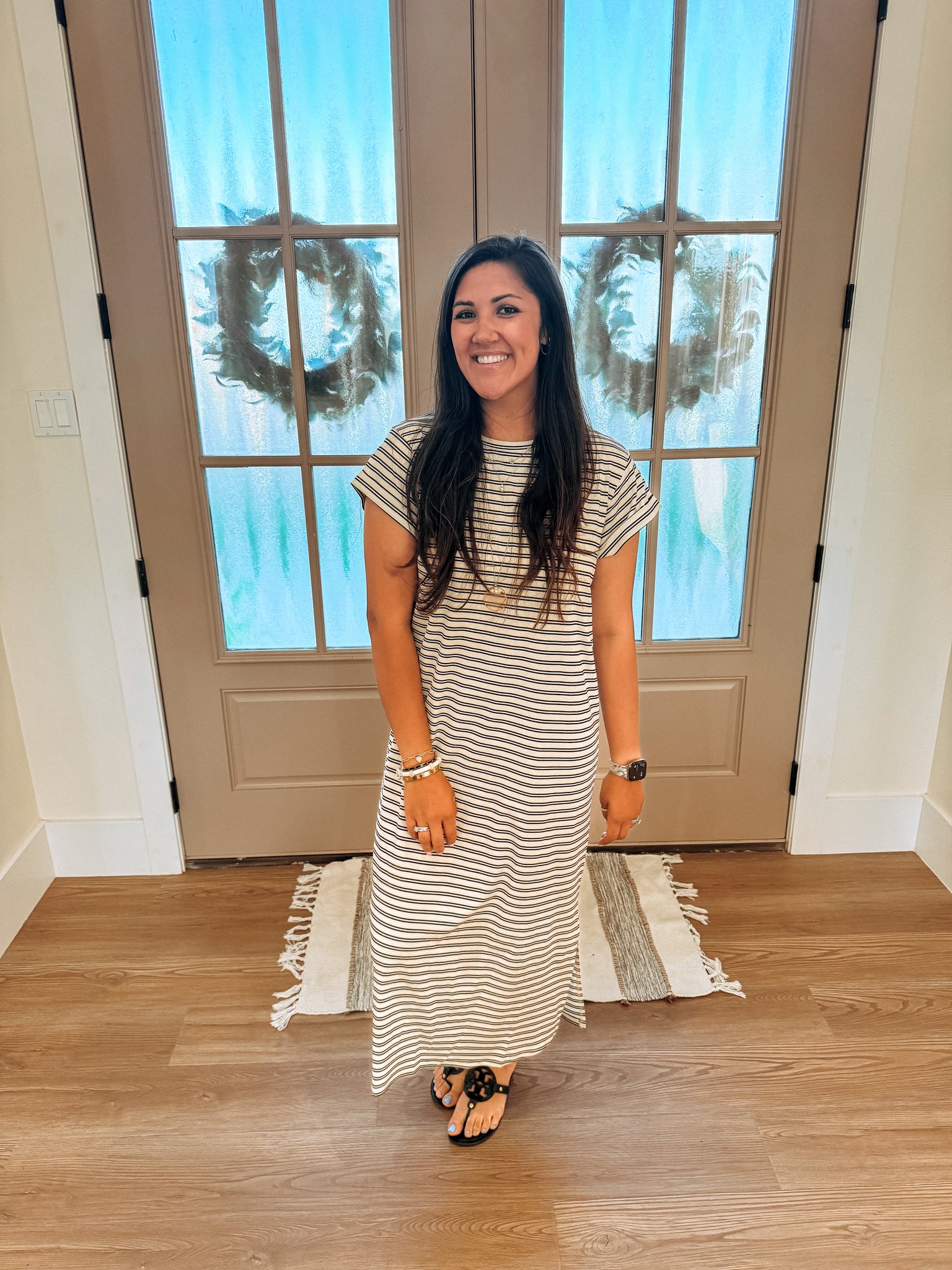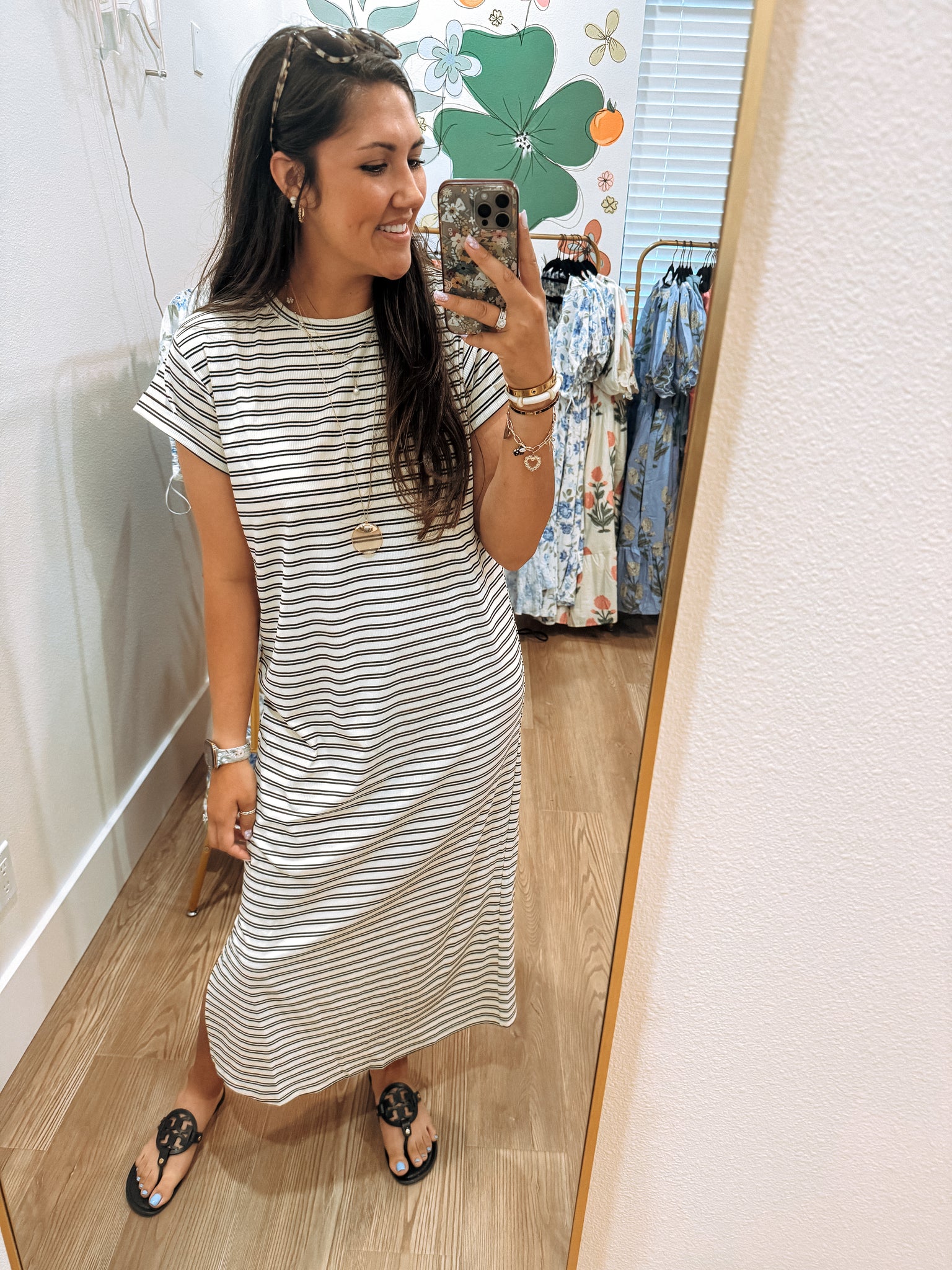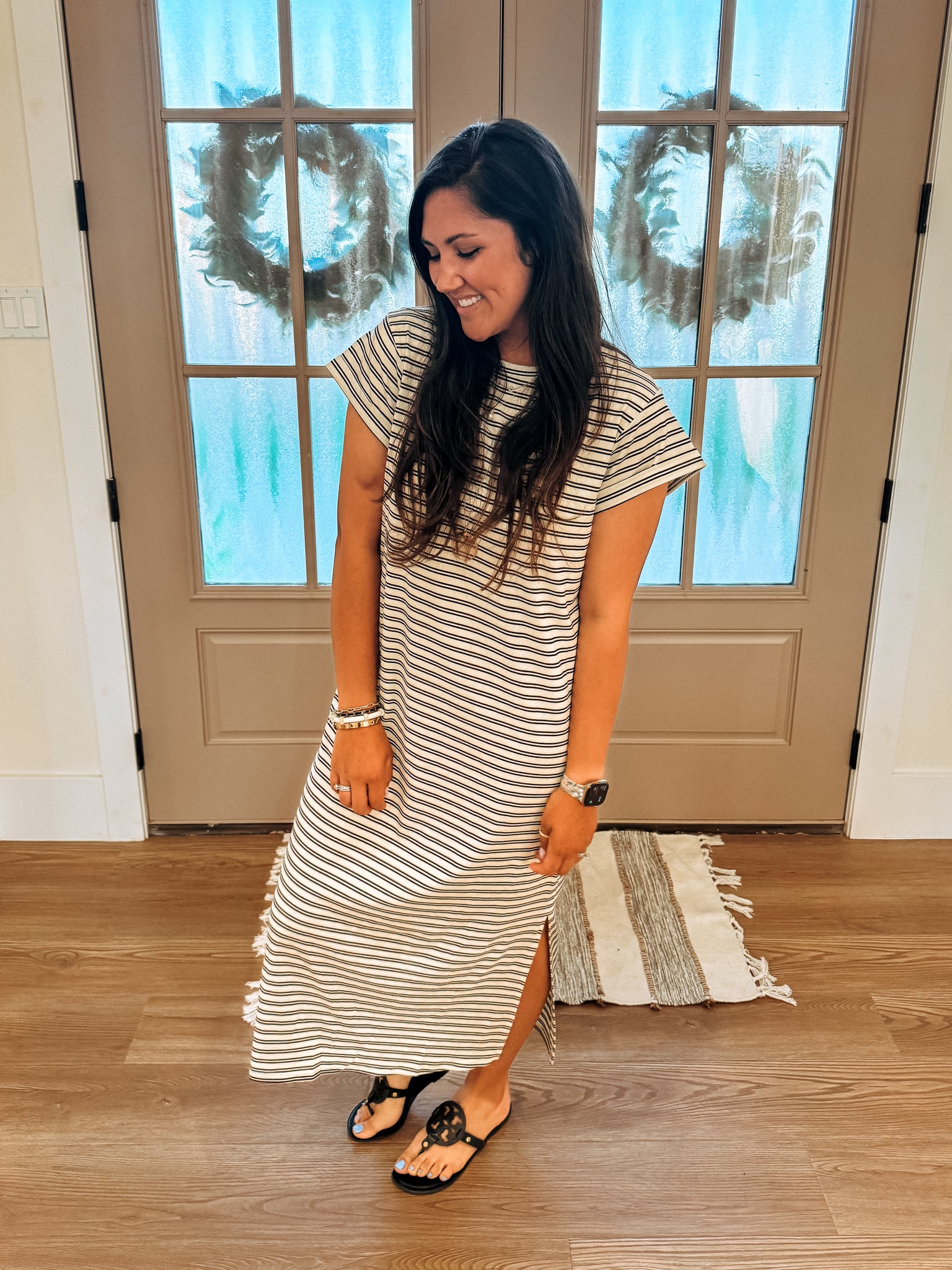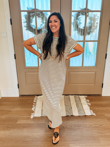 Cracked Pepper Striped T-Shirt Maxi Dress