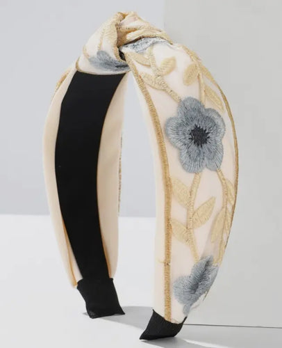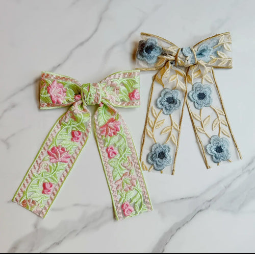 Lacey Flower Embroidered Bow Hair Clip - 2 Colors