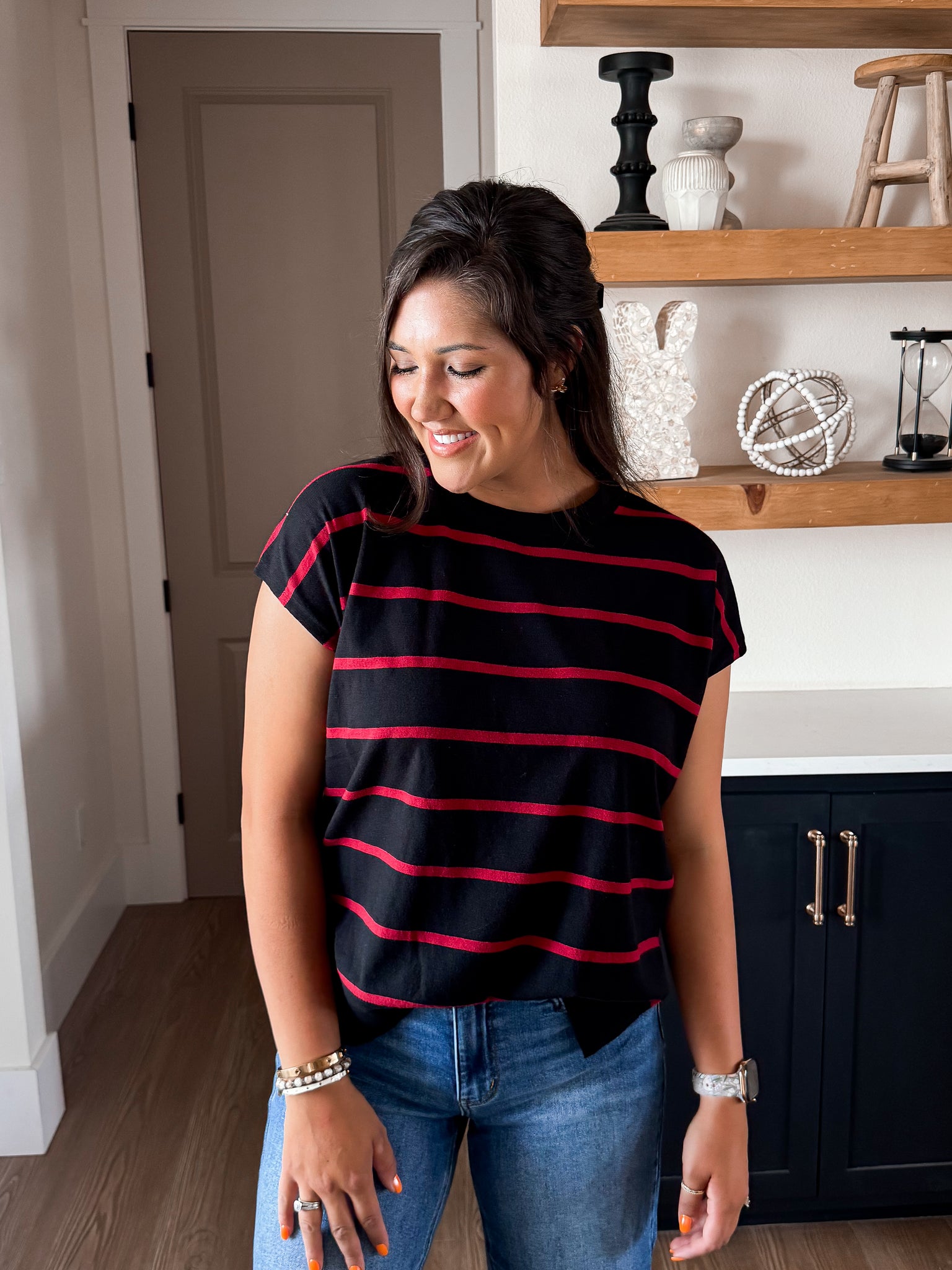 Black Sweater with Red Stripes