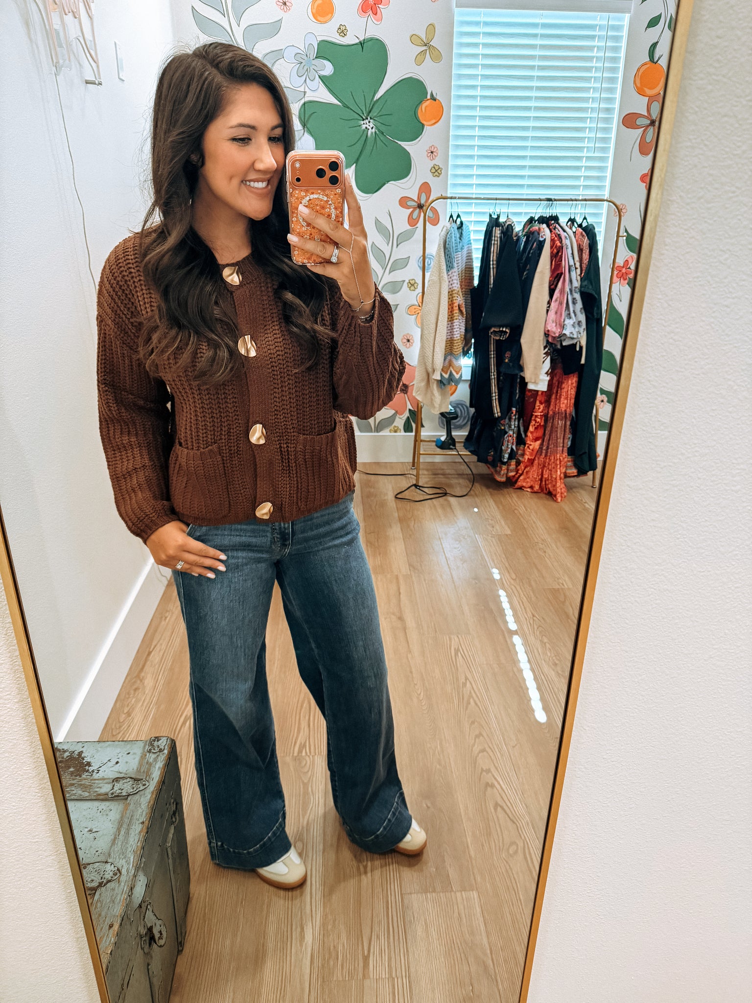 Mocha and Cream Colored Knit Cardigan